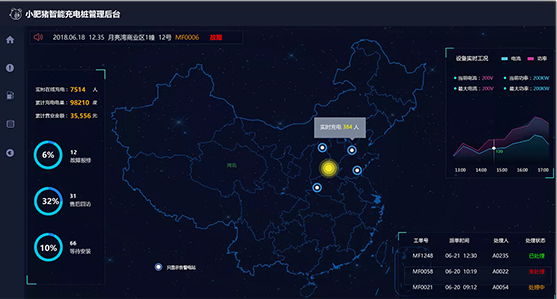 实时监控、查询、管理充电使用状况。 所有运营收入、产品使用负荷、故障情况在数据后台一目了然。